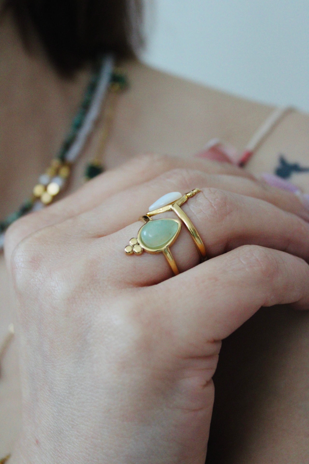 Bague acier inoxydable et réglable orné de pierres naturelles