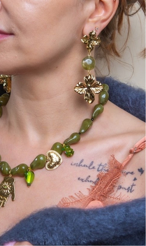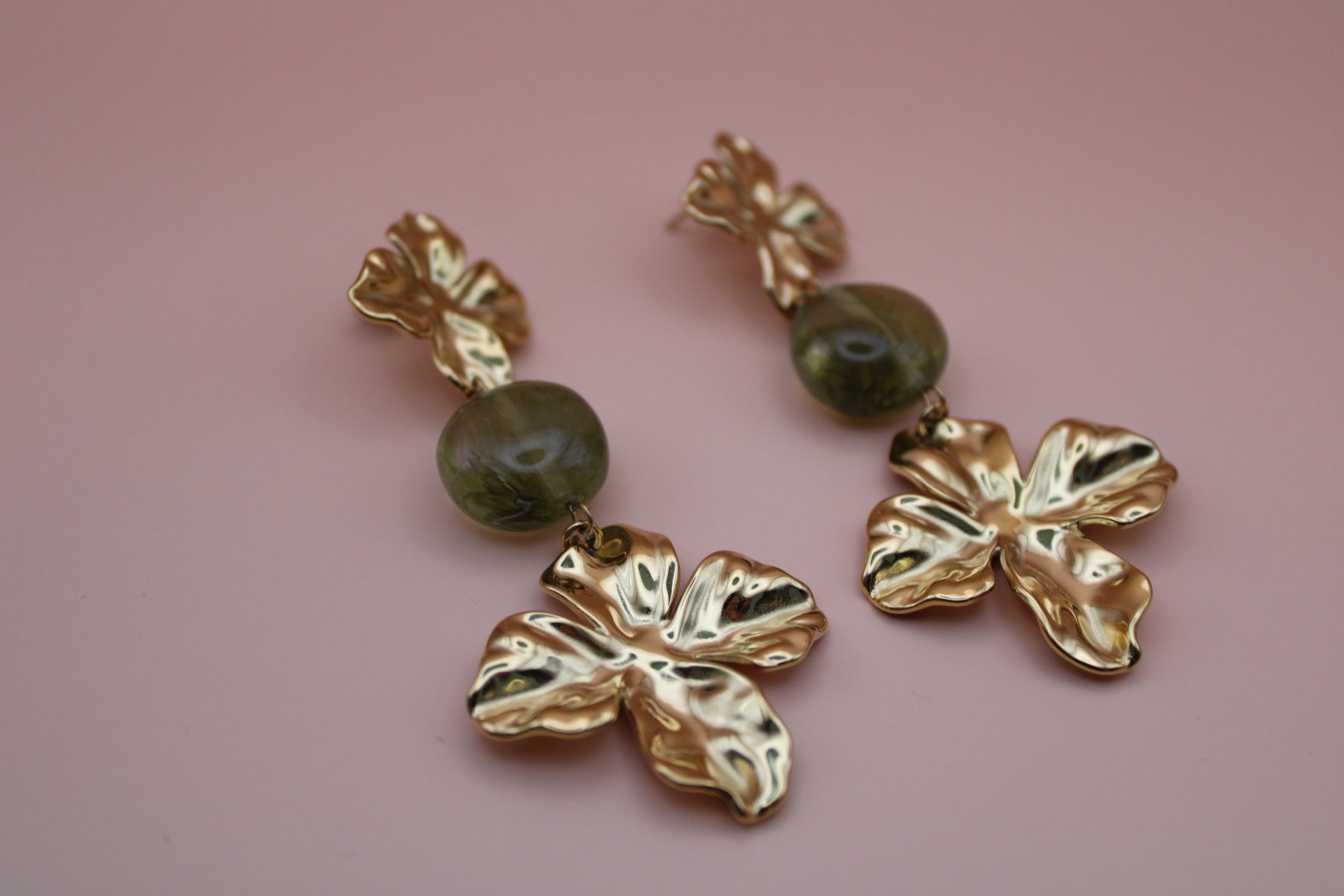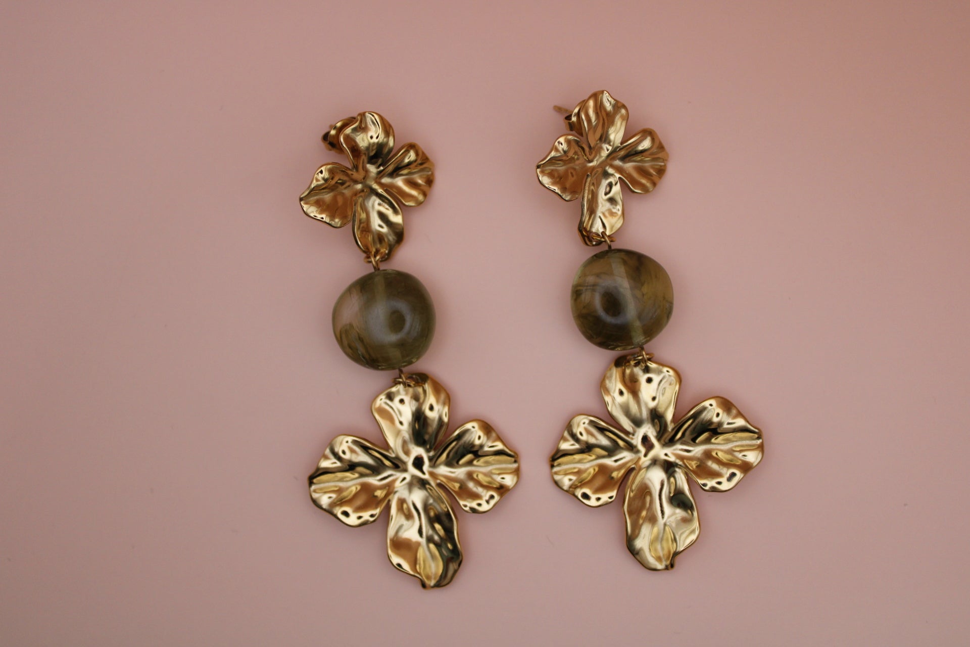 Boucles d’oreilles en acier inoxydable et perle kaki , légères et résistantes à l’eau. Hypoallergenic