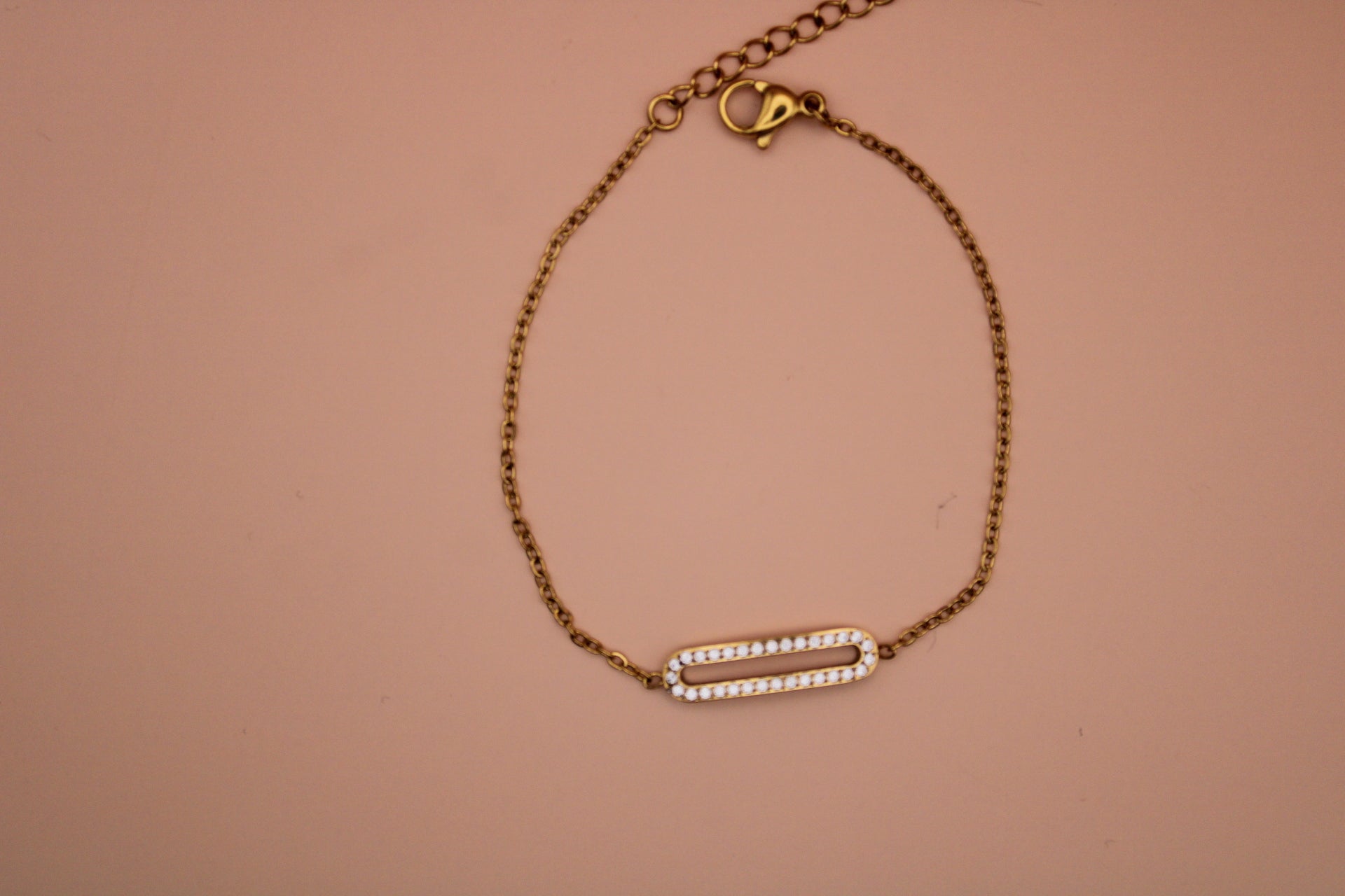 Bracelet délicat en acier inoxydable réglable grâce à sa chaînette d’extension, pendentif en acier inoxydable et zirconium