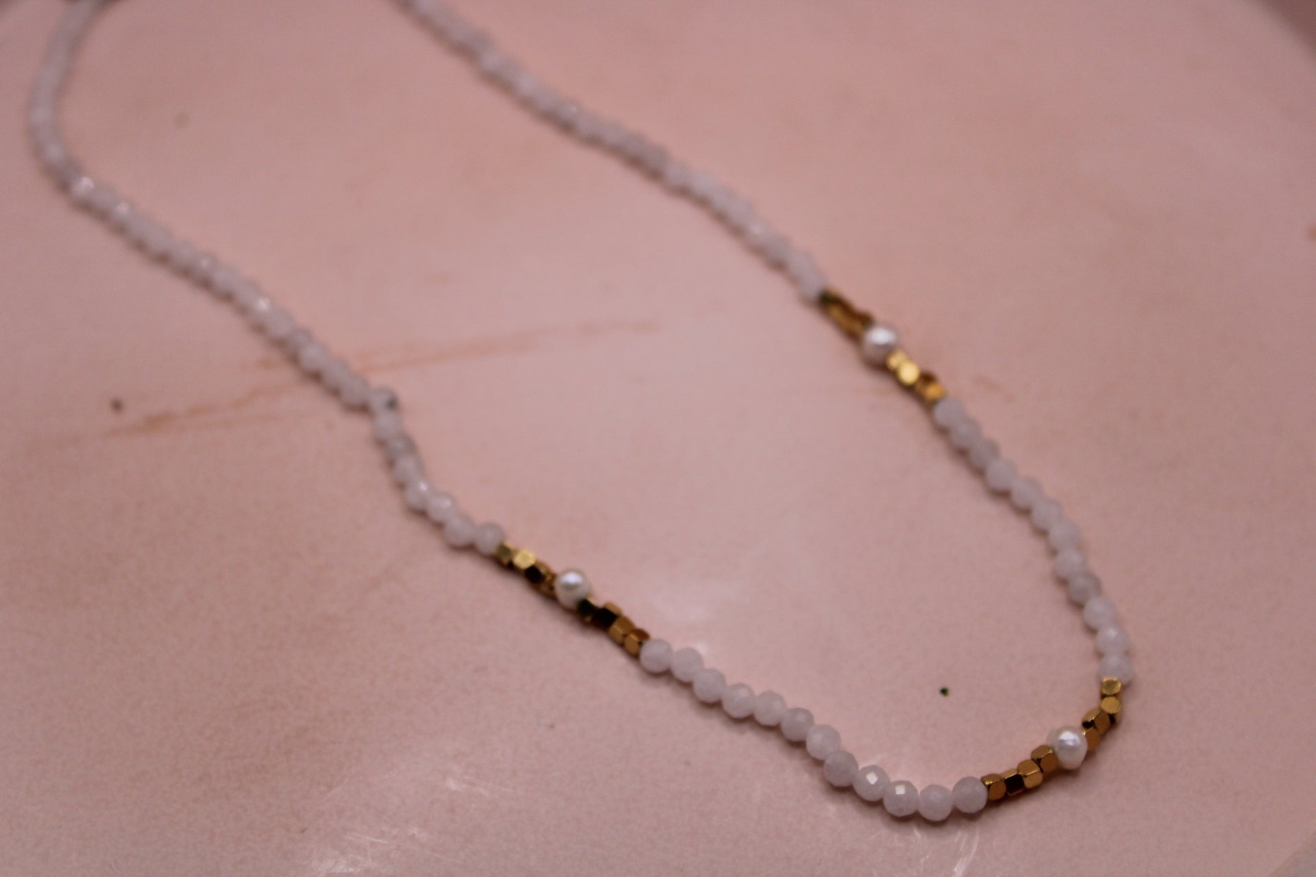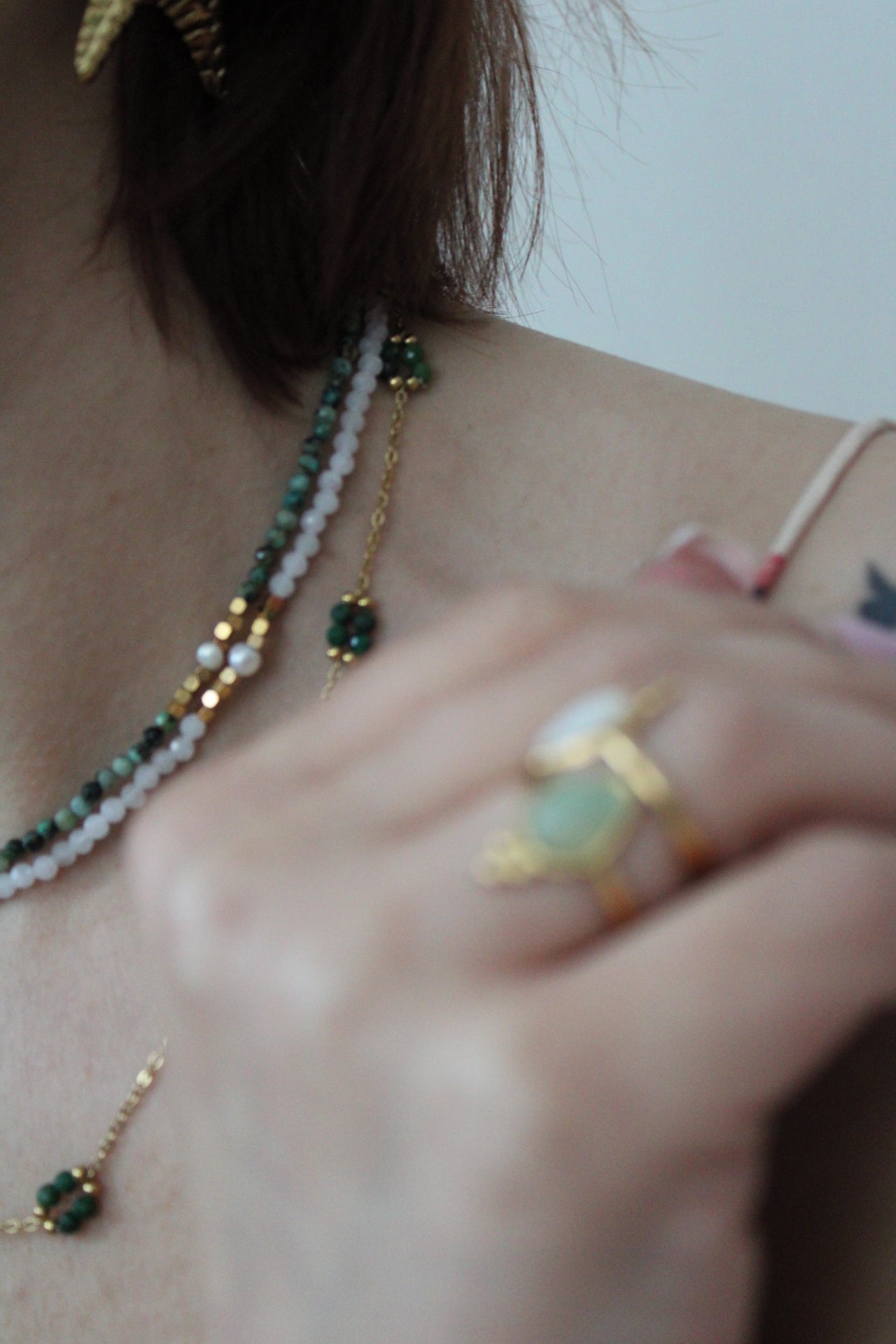 Collier acier inoxydable et pierres naturelles/ perles d’eau douce