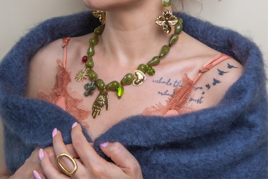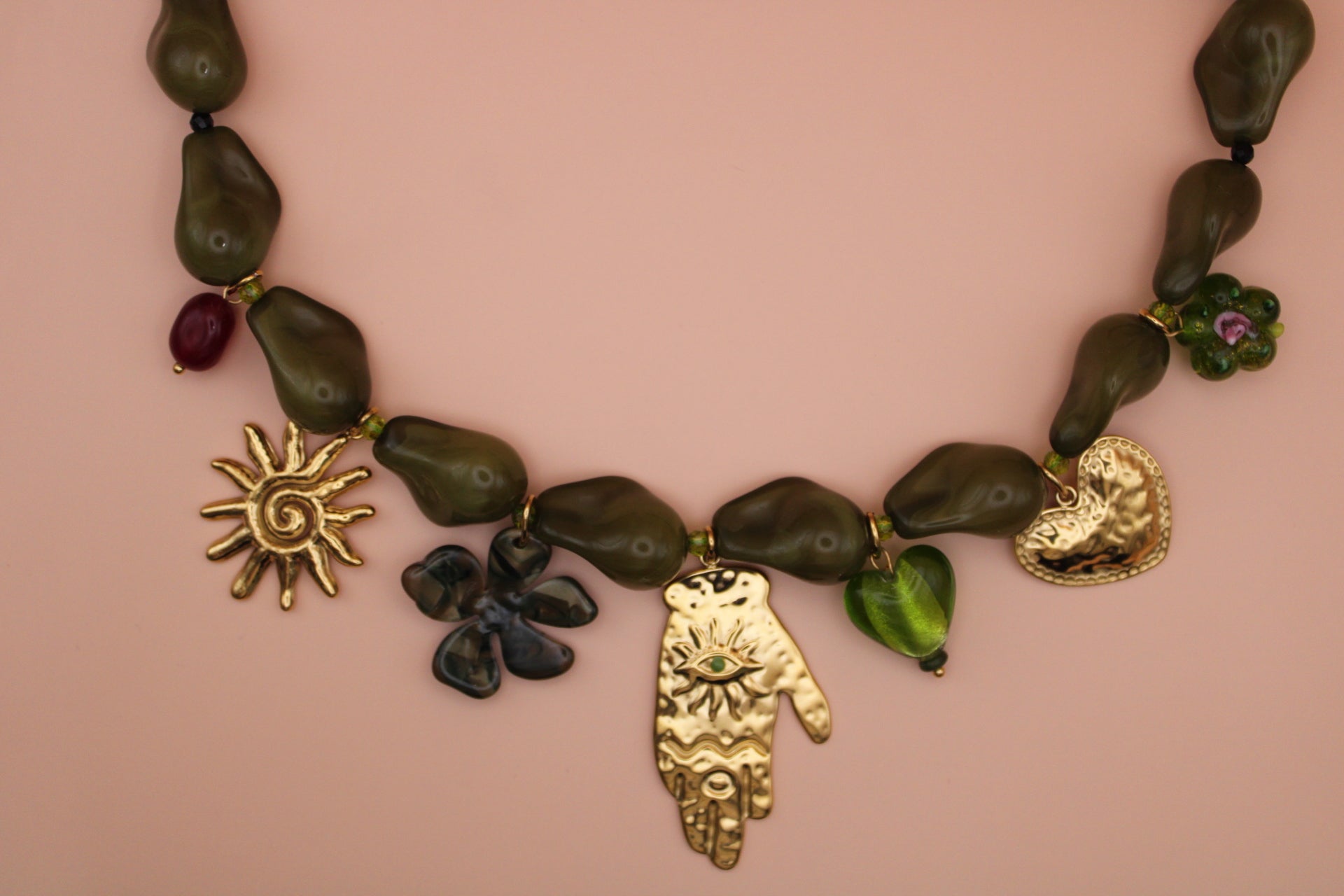 Collier en acier inoxydable et perles acrylique ornées des charm’s