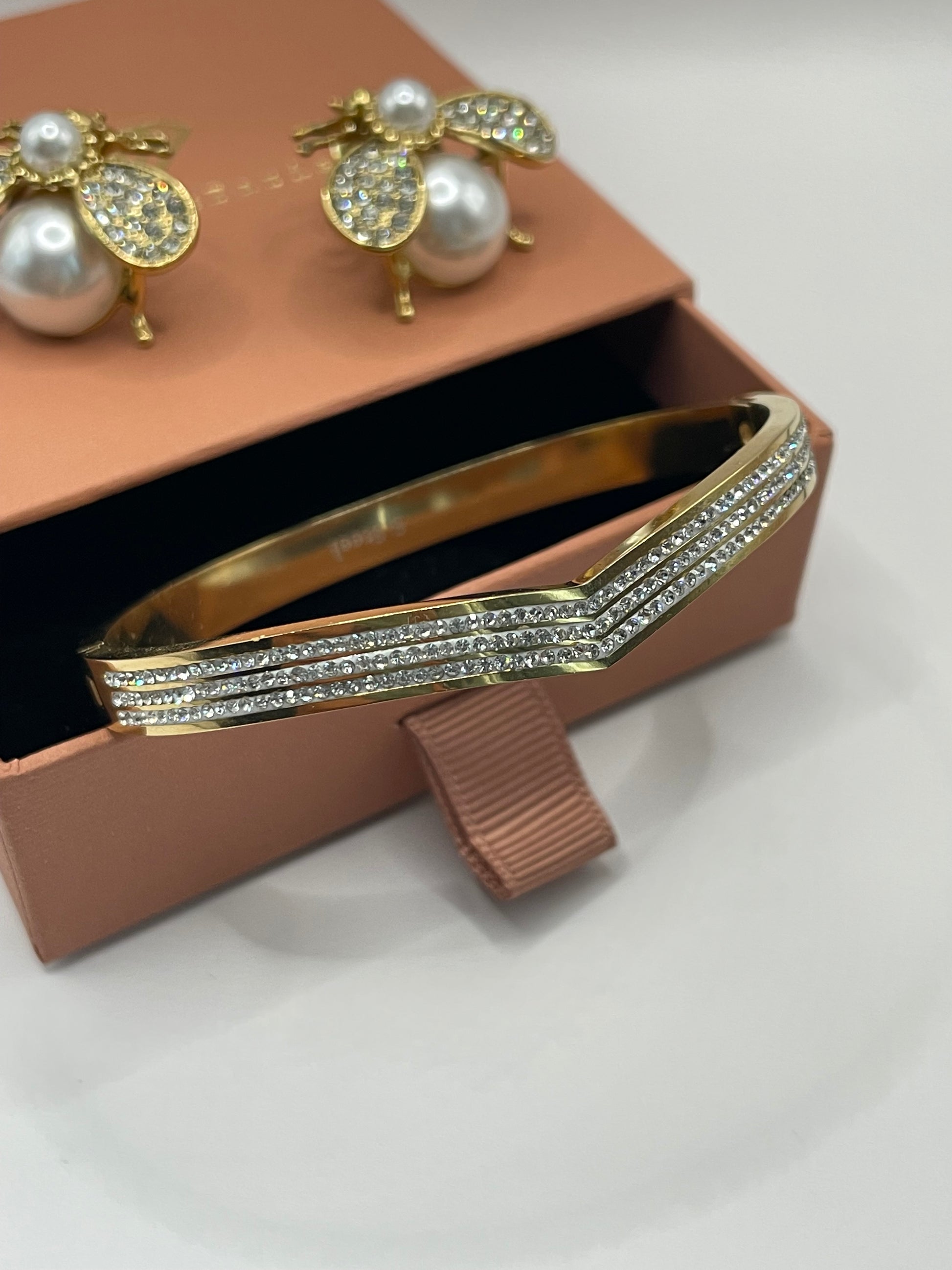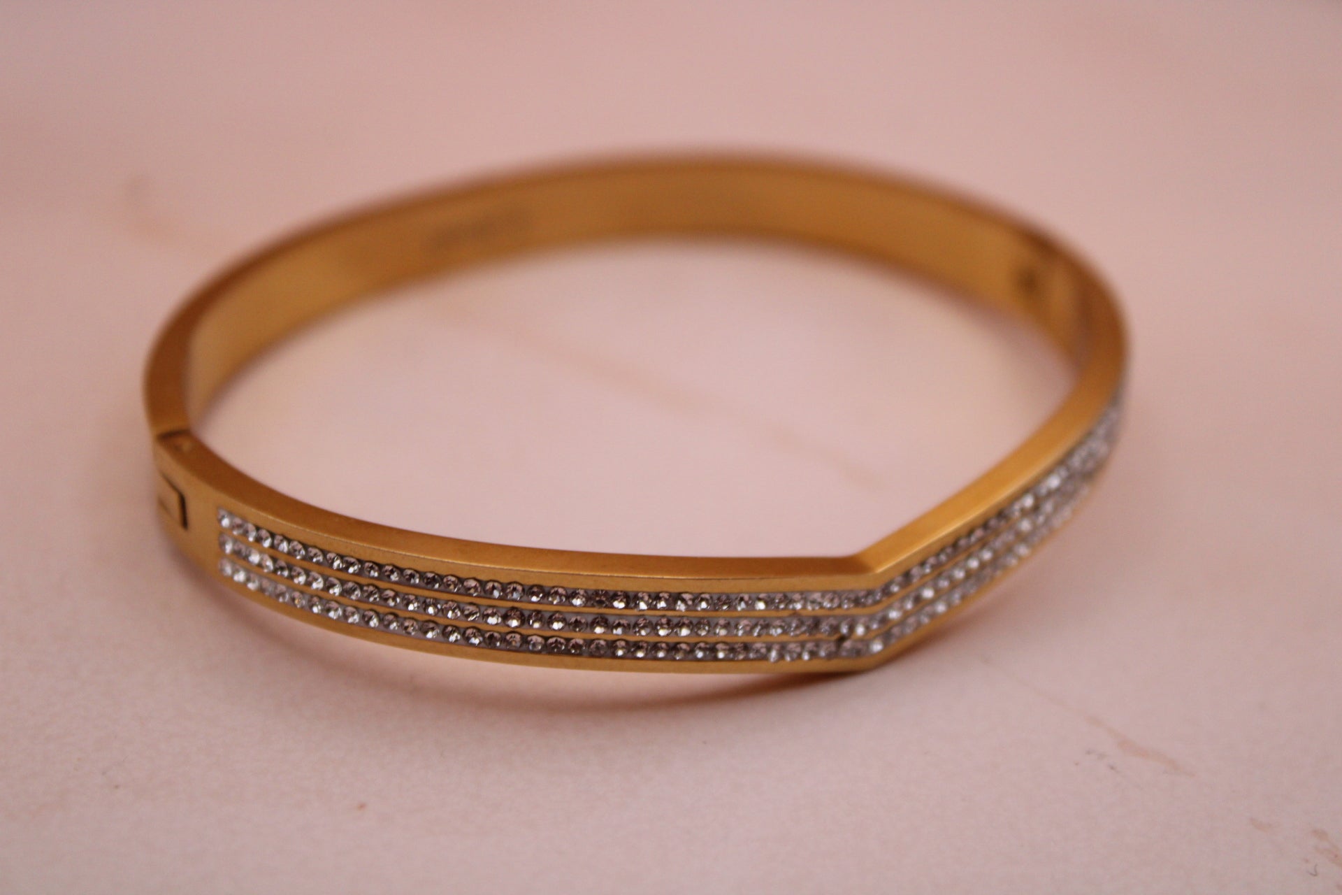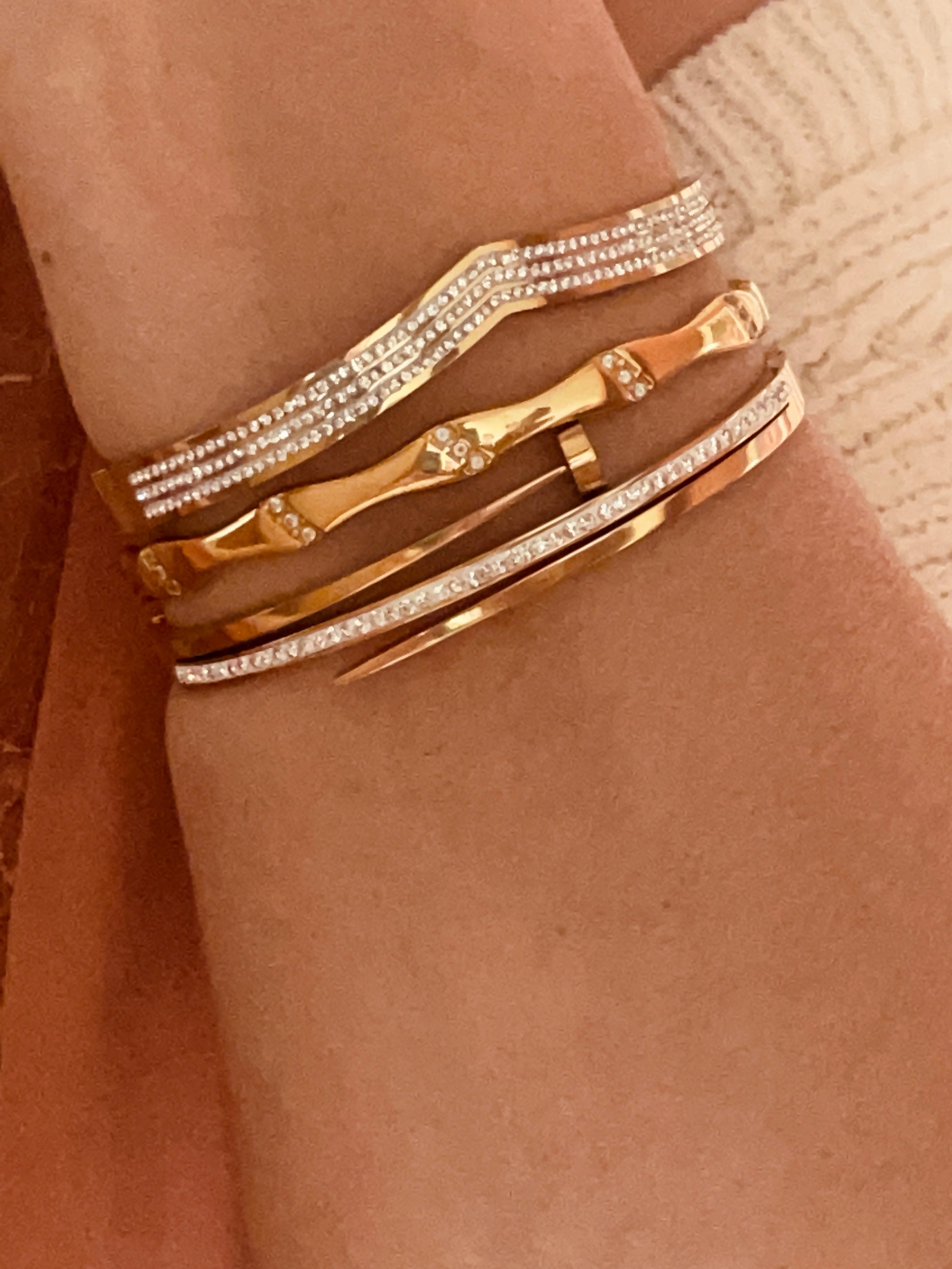 Le bracelet Élaïs en acier inoxydable allie élégance et modernité avec son design doré rehaussé de strass scintillants. Durable et résistant à la corrosion, il conserve son éclat au fil du temps. Sa forme subtilement courbée en fait un bijou original, parfait pour sublimer n'importe quelle tenue. Idéal pour celles qui recherchent un accessoire chic et intemporel